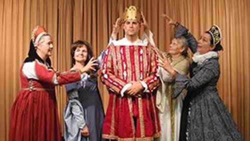 Auf der Bühne stehen 18 aktive Mitwirkende der Route 55+, engagierte „Best Ager“, die mit großer Spielfreude historische Persönlichkeiten lebendig werden lassen. Tobias Anger verkörpert Heinrich VIII. An seiner Seite spielen unter anderem Anja Krämer als Maria Tudor, Petra Steinhäuser als Elisabeth I., Sonnhild Grevel als Maria Stuart sowie Claudia Süss als Morgaine von Avalon.